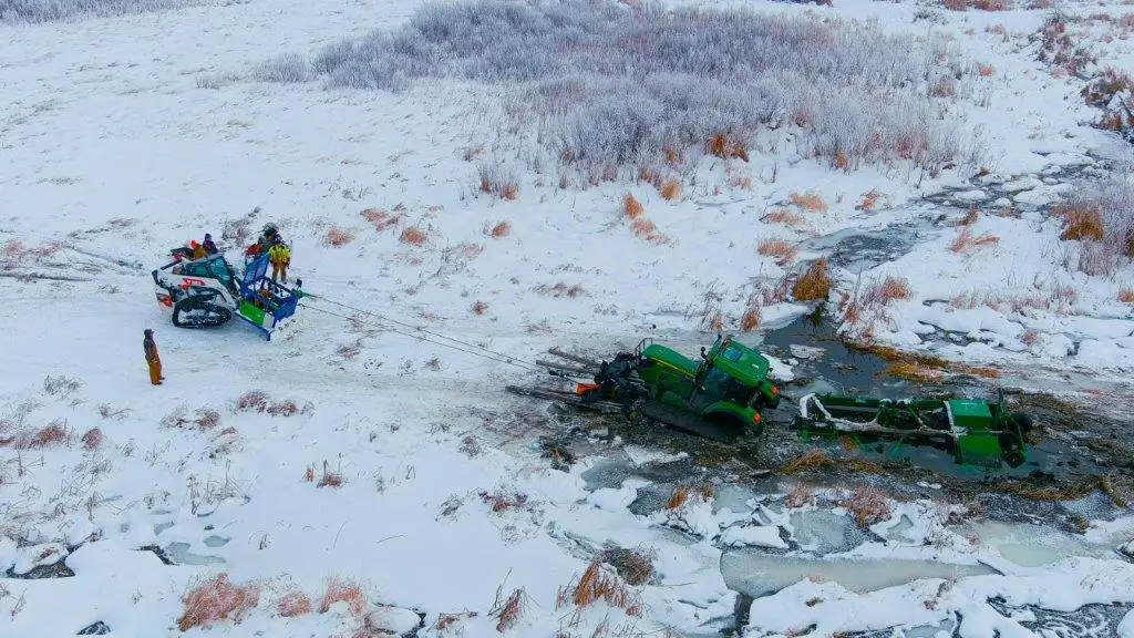 Above: Over the years, Bailie Boys Towing has had plenty of experience recovering trucks, tractors, snowcats, and other vehicles from the ice. It could have ...